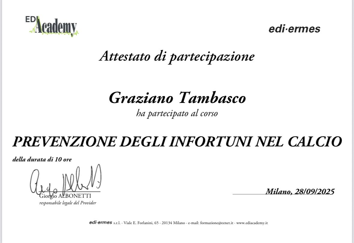 Sono il Dott. Graziano Tambasco, Tecnico Ortopedico ortesista/protesista con master di specializzazione in Posturologia Clinica e Master di specializzazione in Ortopedia e Traumatologia Sportiva; Iscritto al N°35 dell'albo dei tecnici ortopedici, ordine TSRM-PSTRP di Salerno.